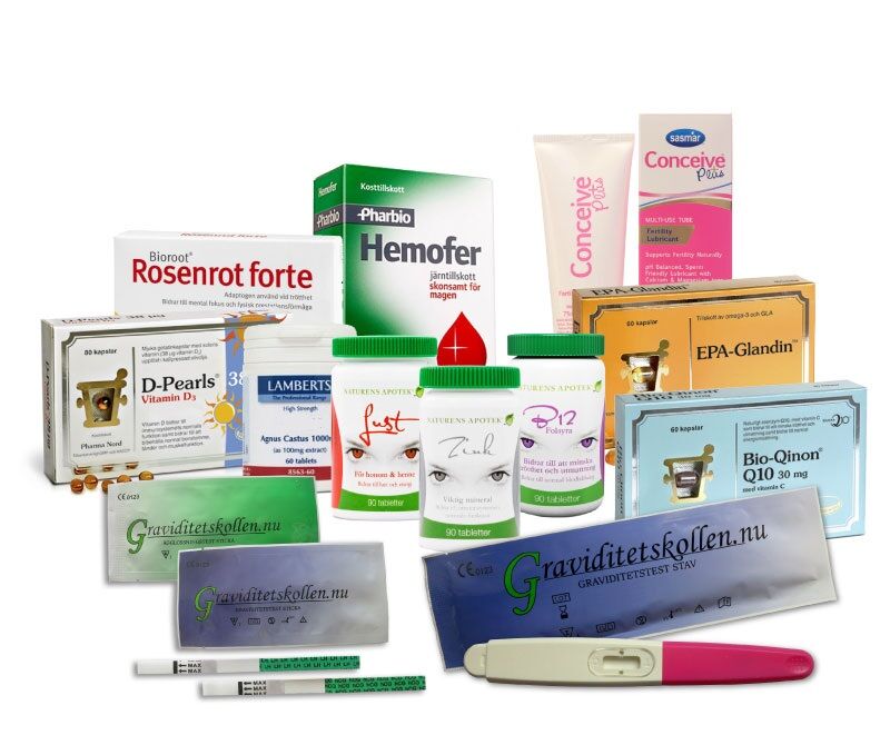 Nedanstående är våra bli gravid-paket, innehållandes kosttillskott som kan användas av dig som vill bli gravid, med ägglossningstest.