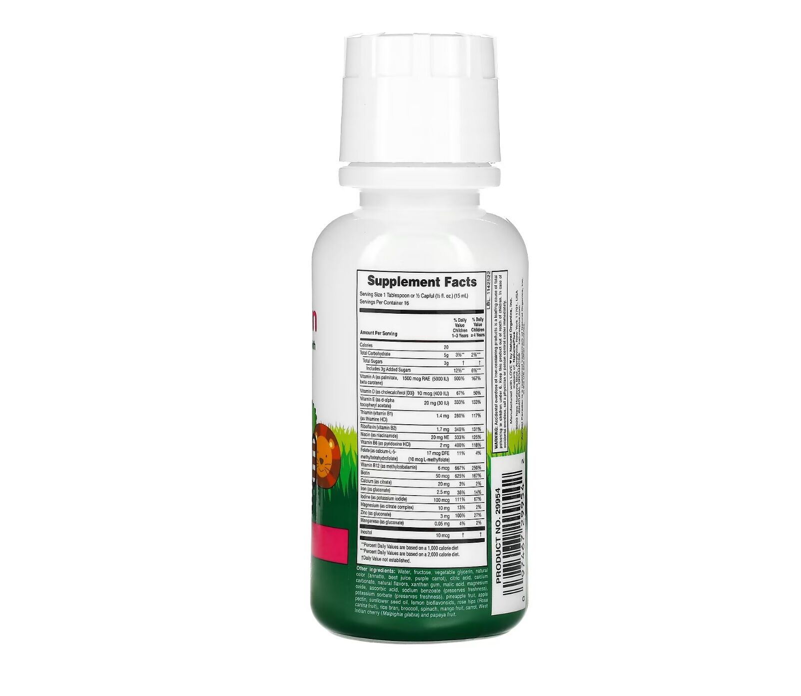 Slutligen innehåller Animal Parade Liquid 11 hela livsmedelskoncentrat, inklusive ananas, äpple, citronbioflavonoider, nypon, helt brunt ris, broccoli, spenat, mangofrukt, morot, västindiska körsbär och papayafrukt. Animal Parade Liquid är en saftig lösning för petiga barn som inte gillar tabletter eller kapslar!
