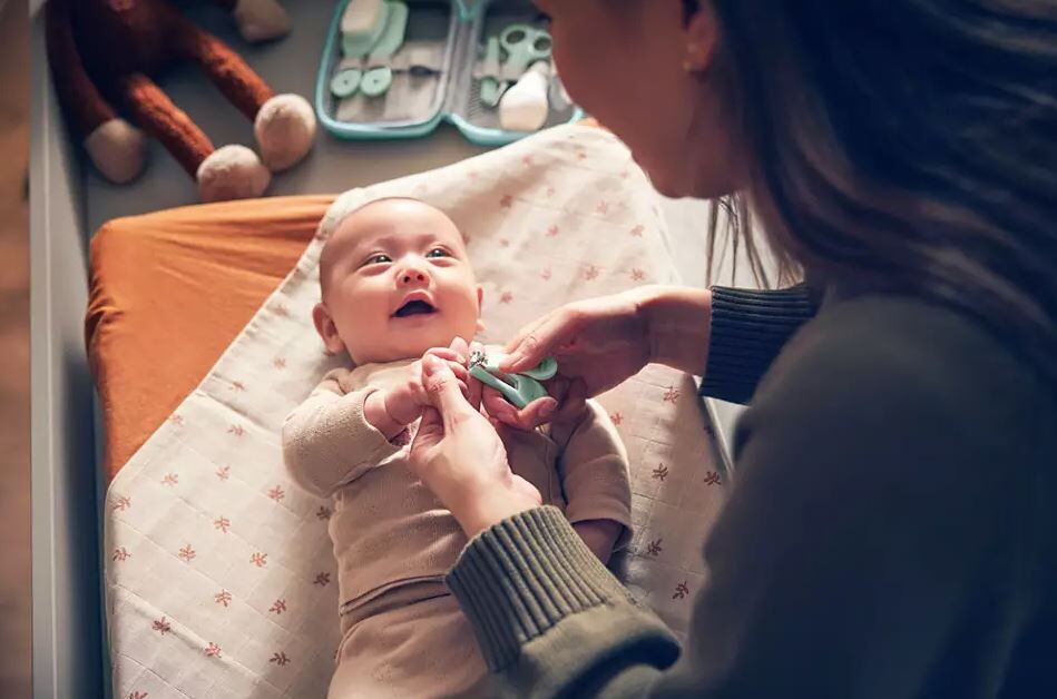 Det här strukturerade setet har plats för andra babyvårdsprodukter men är ändå kompakt och enkelt att ta med. Perfekt för resor och barnrum.