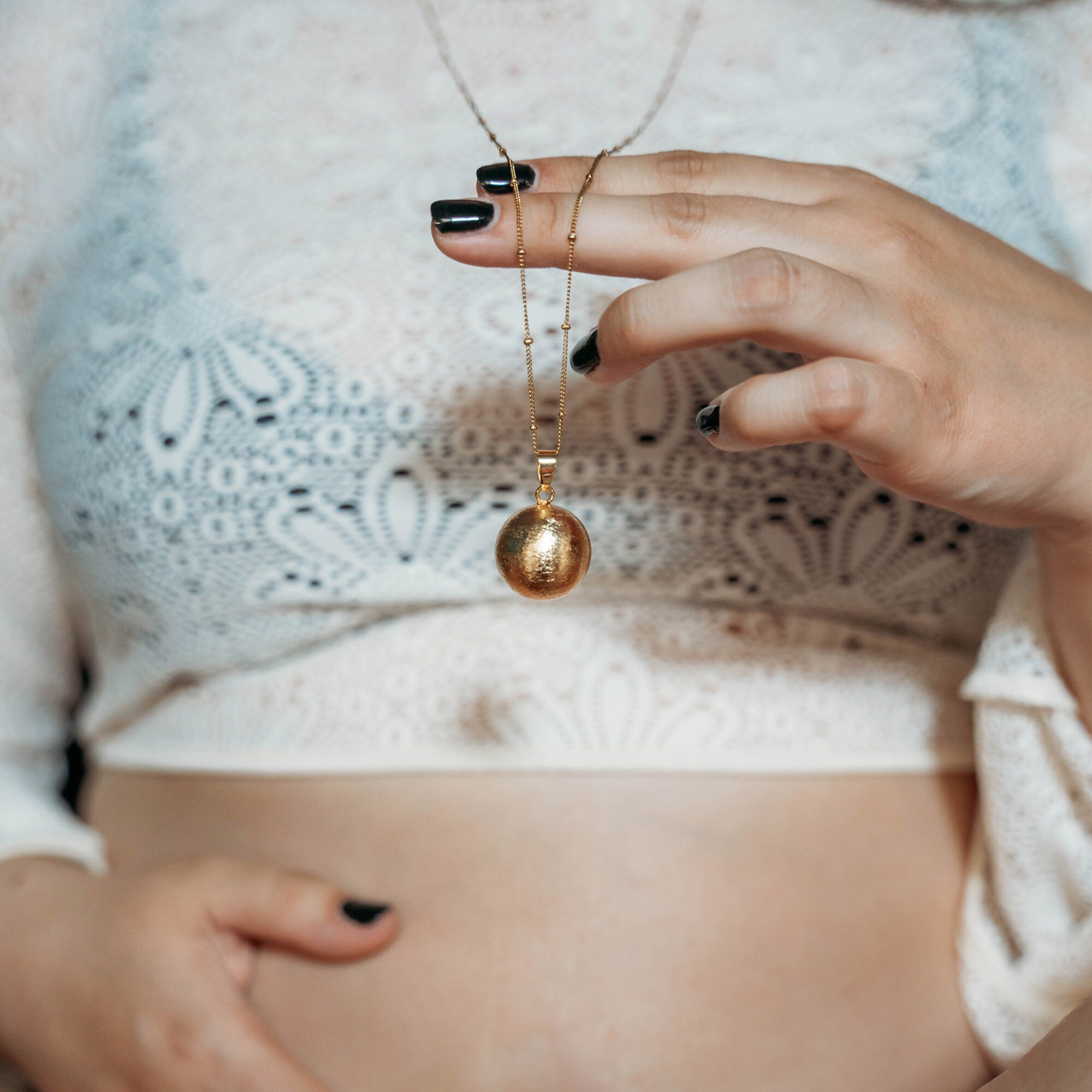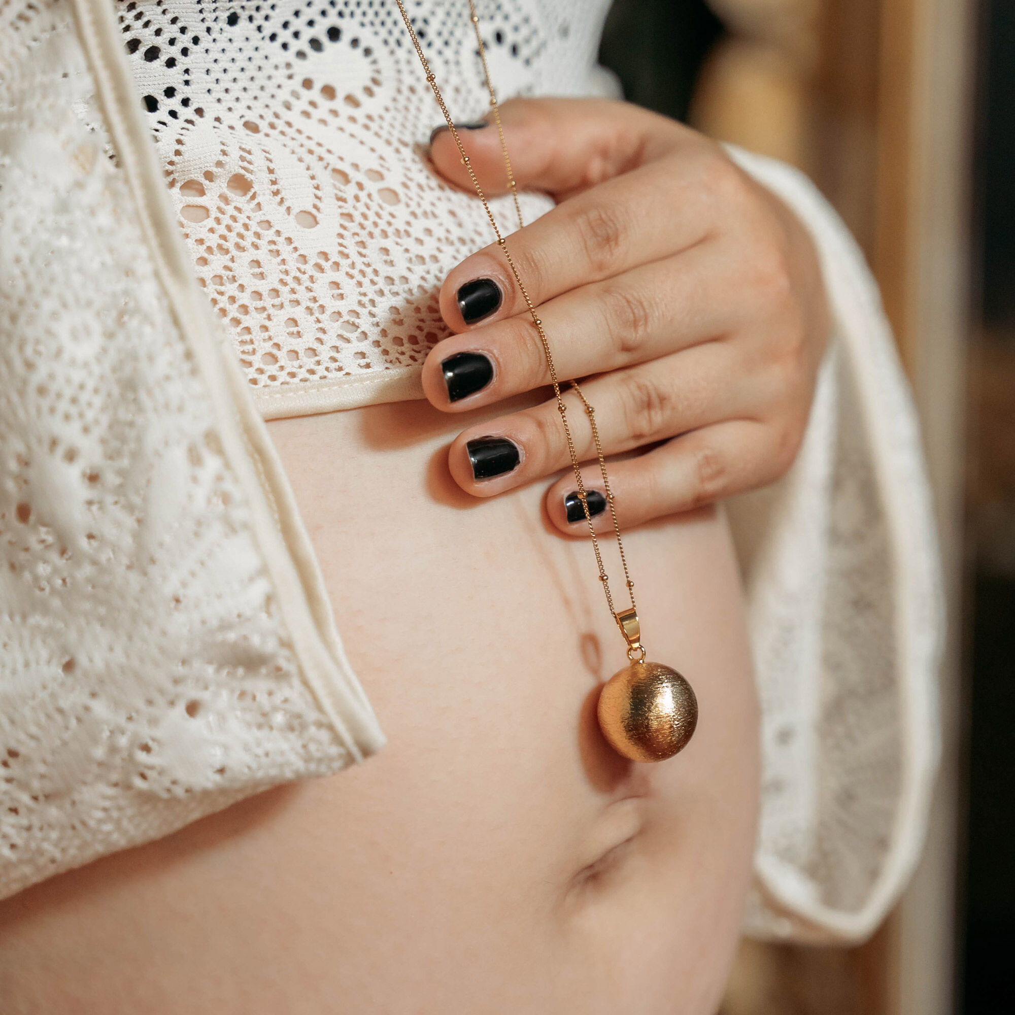 Bola - ett vackert smycke för gravida. Inuti gravidbolan finns en liten xylofon på vilken en boll dansar runt och avger ett svagt, vackert ljud när kvinnan rör sig. Genom att bära smycket långt ner på magen kan barnet höra ljudet.