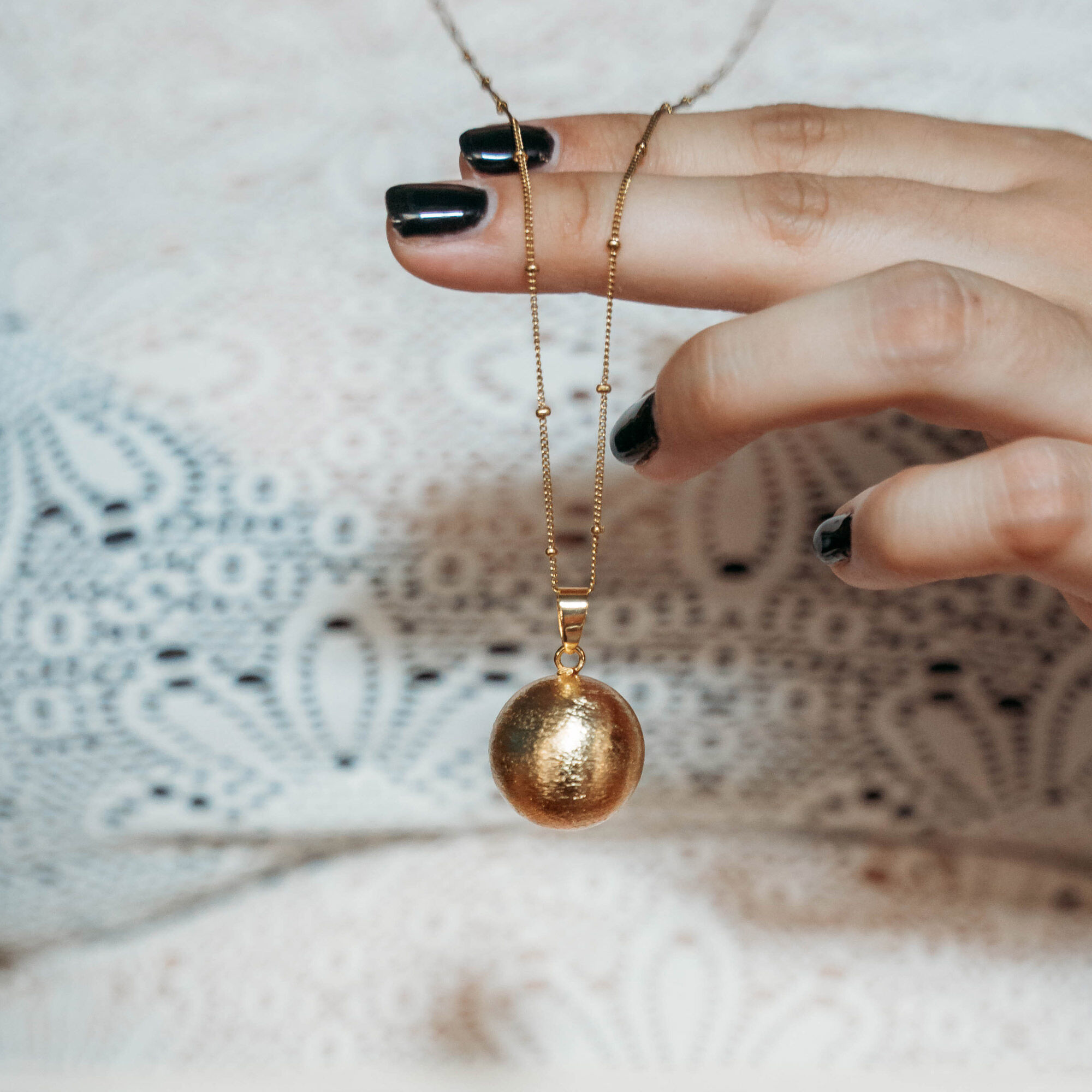 Tillverkad i guldpläterat, nickelfritt stål. Halsband i matchande guldfärg medföljer.