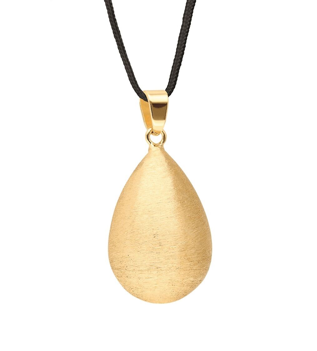 Tillverkad i guldpläterat, nickelfritt stål. Band av vaxad bomull.