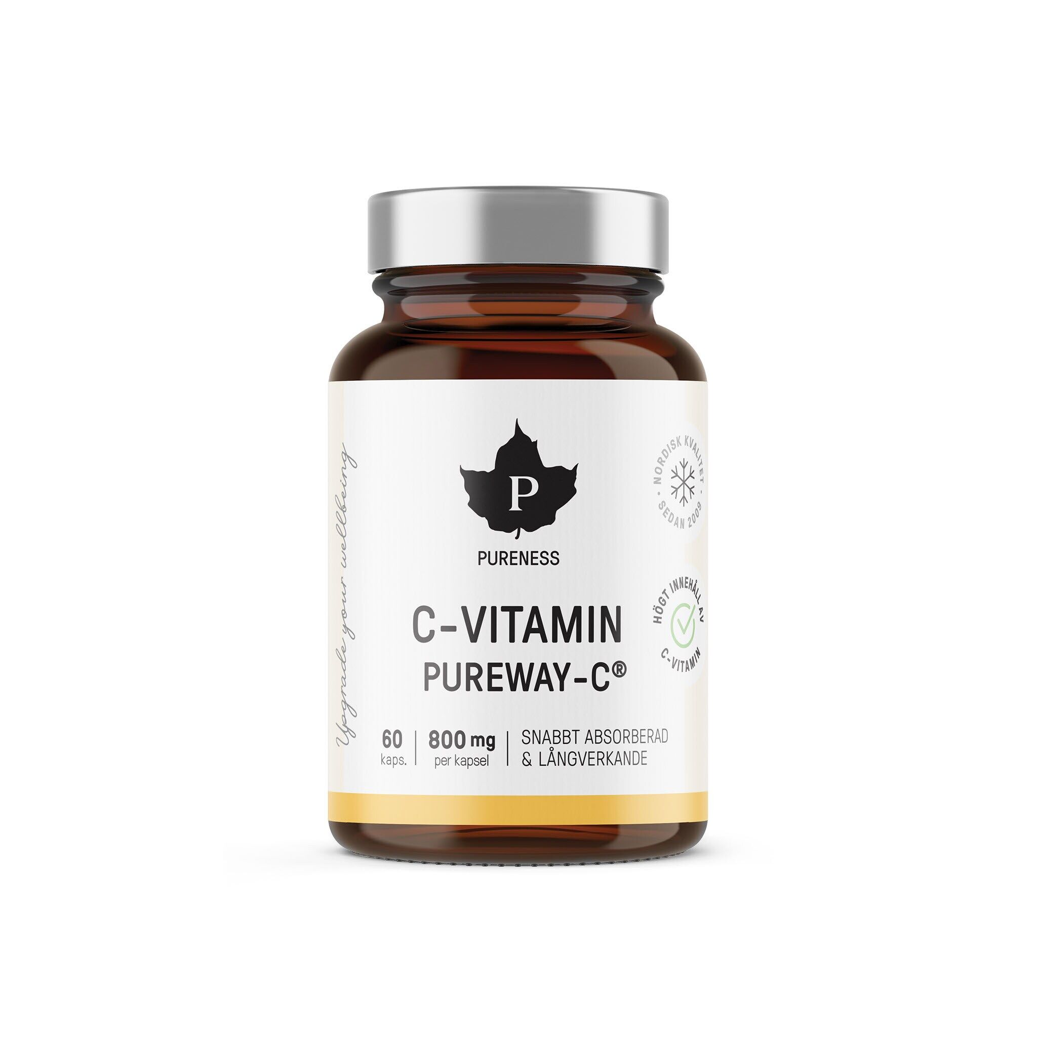 Pureness C-vitamin är ett effektivt absorberat och långverkande kosttillskott från den vetenskapligt undersökta formen av C-vitamin, PUREWAY-C®. Askorbinsyran i produkten är bunden till fettsyror, vilket förbättrar upptaget av vitaminet och dess utnyttjande i kroppen.