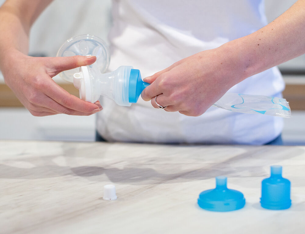 Anslut bröstmjölkspåsen direkt till din bröstpump och pumpa direkt med de medföljande pumpadaptrarna.