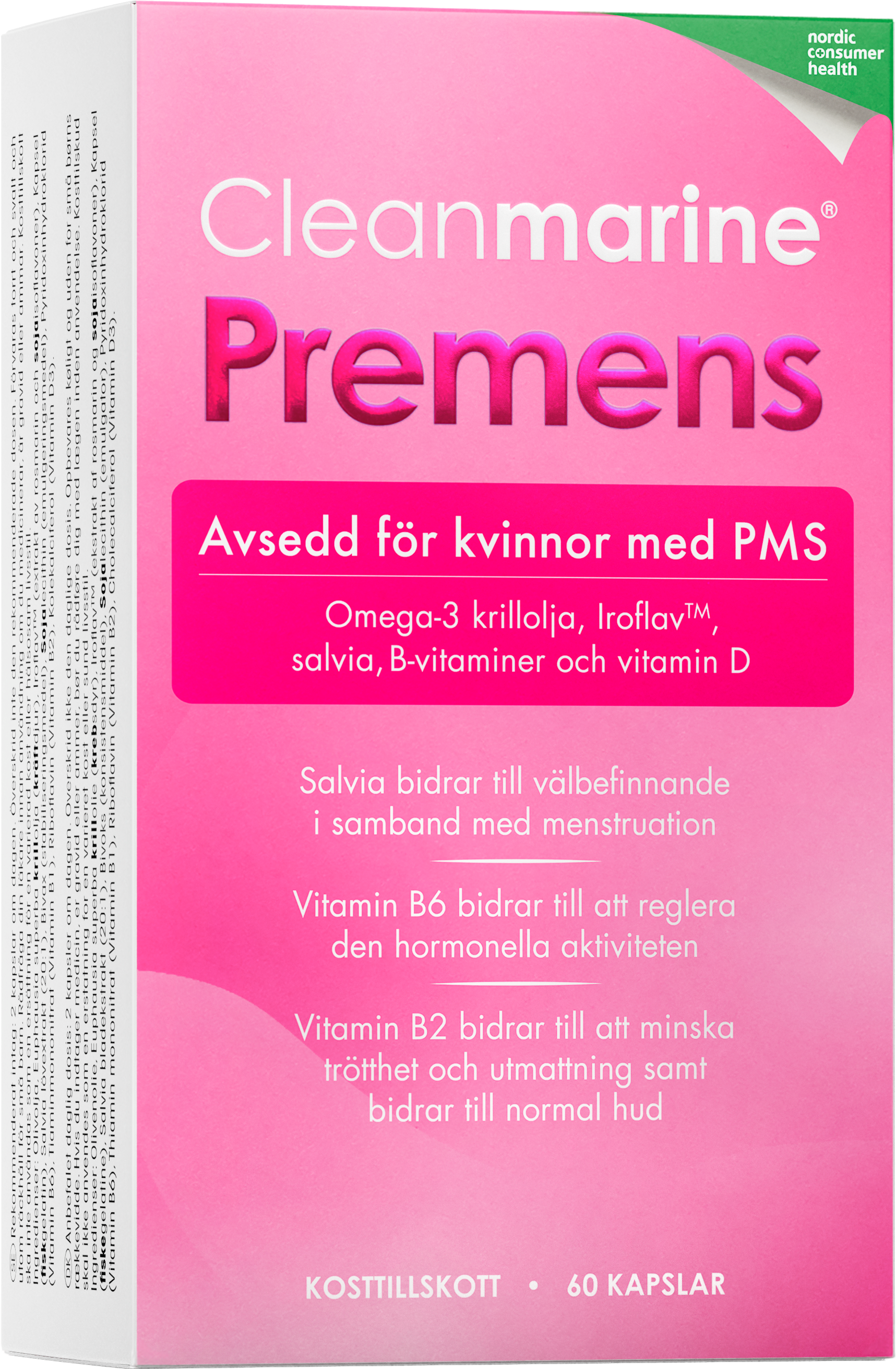 Ingredienser: Olivolja, KRILLolja (KRÄFTdjur), Iroflav (rosmarinextrakt och SOJAisoflavoner), kapsel: FISKgelatin, salvia lövextrakt, bivax (stabiliseringsmedel), SOJAlecithin (emulgeringsmedel), pyridoxinhydroklorid (vitamin B6), tiaminmononitrat (vitamin B1), riboflavin (vitamin B2), kolekalciferol (vitamin D3). Innehåller inga konserveringsmedel.