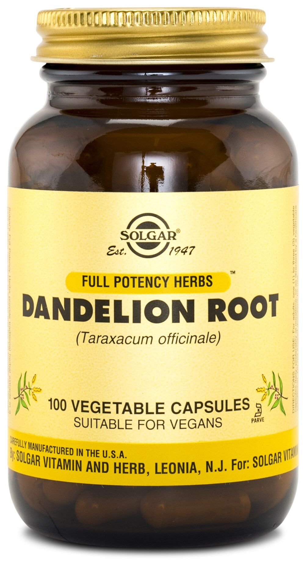 Solgar® Dandelion root 500 mg ska tas som en vegetabilisk kapsel upp till tre gånger om dagen, vilket enkelt ger alla fördelarna med denna näringsrika ört.