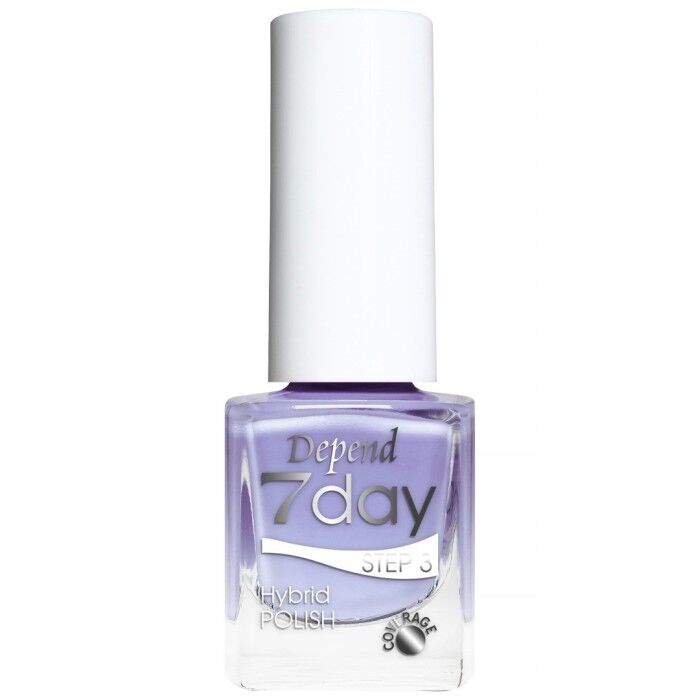 När du applicerar Depend 7day BASE, POLISH och TOP gör du alltid alla 10 naglarna i en följd. 1. Rengör naglarna med Depend 7day CLEANSER. Vänta 30 sek så att ytan är helt torr. 2. Applicera 7day Protecting BASE på alla naglarna. Börja på lillfinger (från höger eller vänster). 3. Därefter kan du direkt applicera det första lagret av 7day Hybrid POLISH. Vänta för säkerhets skull 30 sekunder innan lager 2 av Hybrid POLISH appliceras. Vänta även här 30 sekunder extra innan du applicerar 7day Hybrid TOP. 4. Du avslutar med att applicera Hybrid TOP i två lager. Vänta 3 min innan du applicerar sista lagret av Hybrid TOP. Efter 5 min är 7day-behandlingen torr så att du kan vidröra lackytan. Hela behandlingen tar 15-20 min beroende på hur van du är vid att lacka.