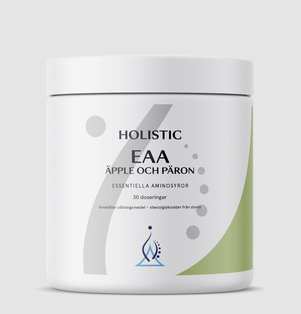 Holistic EAA intas i samband med träning och/eller som ett näringskomplement för att tillföra essentiella aminosyror, vilka utgör grundstenarna i bildandet av proteiner. Proteiner består av totalt 20 aminosyror, där de nio essentiella aminosyrorna är de som kroppen inte själv kan producera och därför måste tillföras genom kosten. Holistic EAA erbjuder en välbalanserad blandning av alla nio essentiella aminosyror, inklusive glycin och L-alanin, som alla är avgörande för uppbyggnad och bevarande av muskelproteiner, vävnadsreparation och hormonproduktion.