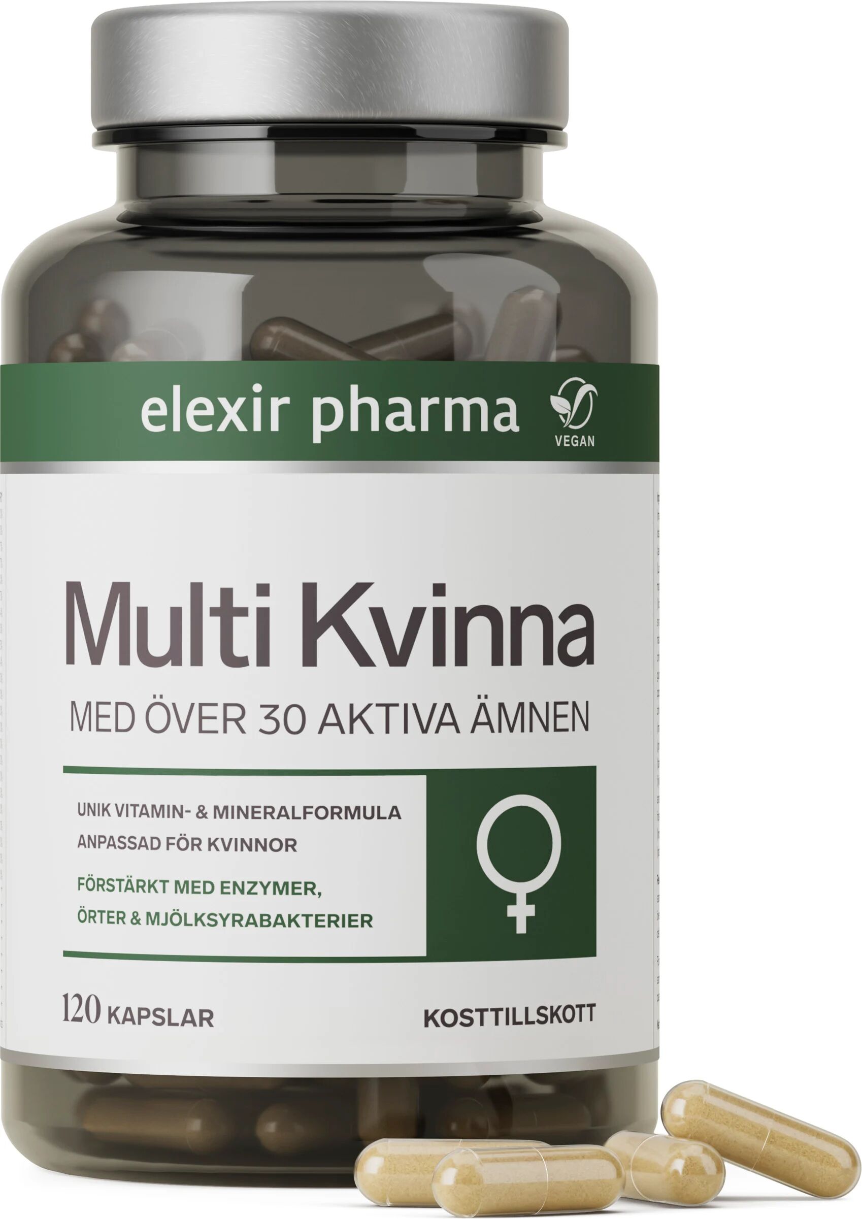 Utöver vitaminer och mineraler innehåller kosttillskottet bland annat matsmältningsenzymer, tranbärsextrakt och schisandra. OBS, inte för gravida kvinnor.