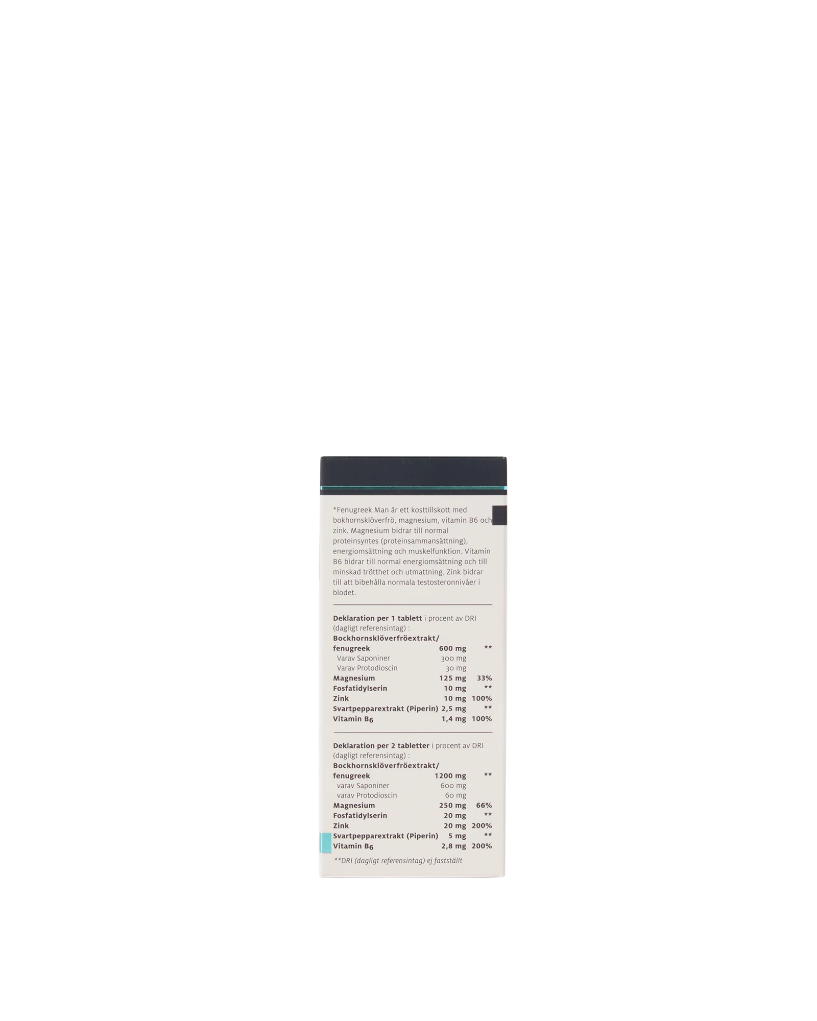 | Extrakt av Bockhornsklöverfrö/Fenugreek | 600 mg | ej fastställt | 1200 mg | ej fastställt |