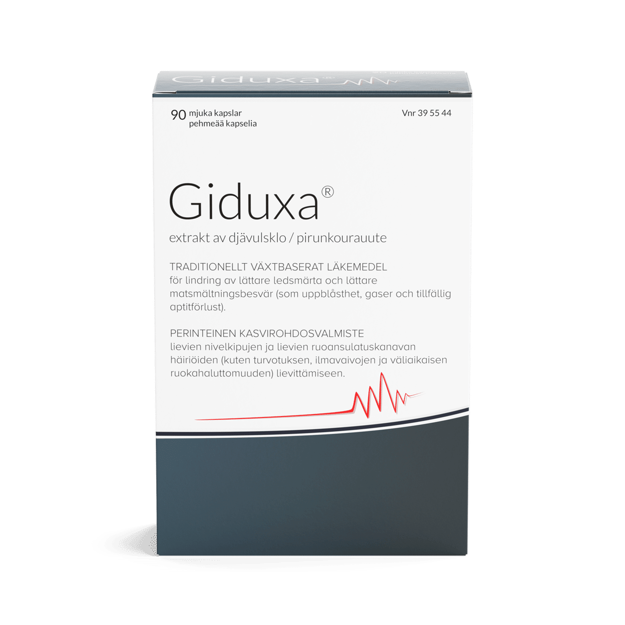 Giduxa ska ej tas under graviditet eller amning. Ledsmärtor som åtföljs av svullna leder, rodnad eller feber ska utredas av läkare. Vid gallstensbesvär, rådfråga läkare innan du använder Giduxa. Giduxa innehåller laktos och sorbitol. Vid ärftliga tillstånd som fruktos- eller galaktosintolerans, total laktasbrist eller glukosgalaktosmalabsorption ska Giduxa inte användas.