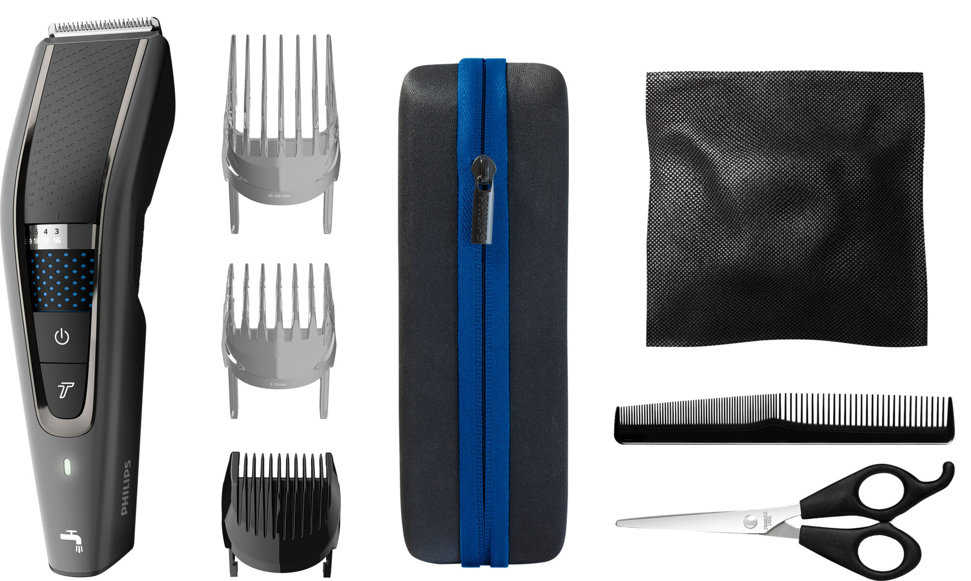 Klipp håret till exakt den längd du vill ha med två justerbara kammar som klipper mellan 3 och 28 mm i steg om 1 mm, en 2 mm skäggstubbskam eller ta bort kammen för en nära trimning på 0,5 mm.