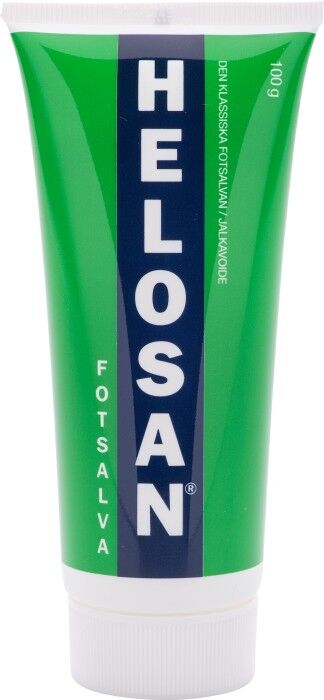 Helosan Fotsalva är en mjukgörande och återfuktande fotsalva för extra torr hud. Fotsalvan är baserad på samma välgörande ingredienser som du hittar i Helosan Original och innehåller dessutom karbamid och mjölksyra som effektivt mjukar upp förhårdnader och sprickor som ofta uppstår på utsatta områden som fötter och hälar. Som en extra bonus hämmar mjölksyran dålig lukt och motverkar obehagliga angrepp av fotsvamp. Vid akut vård av hälsprickor och liknande kan det vara bra att smörja in fötterna innan du går och lägger dig på kvällen och ha bomullssockor på dig när du sover. Då får fötterna den intensivkur med fukt och vård som de kan behöva för att bli av med hälsprickorna. Om du har väldigt hård hud på hälarna eller andra ställen på fötterna, kan du fila fötterna ordentligt med en bra fotfil innan du smörjer in dem med Helosan Fotsalva. 100 g.