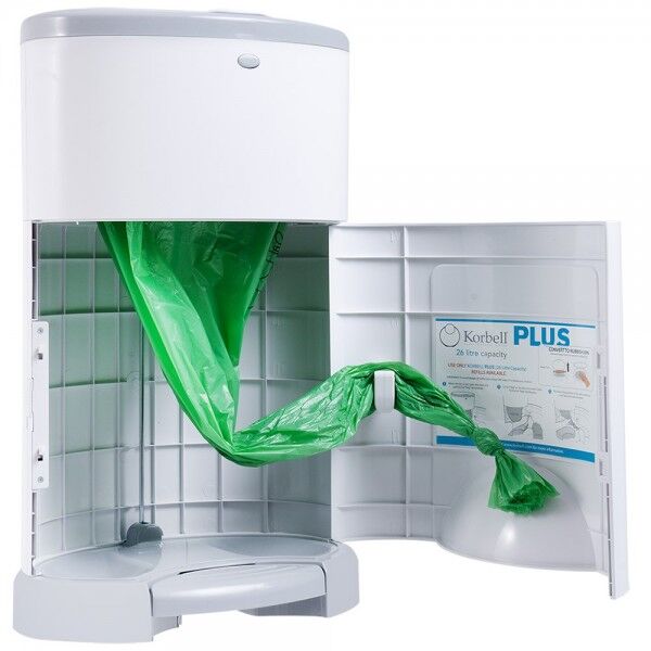Korbell håller oönskade lukter borta. Tack vare den genomtänkta designen med förslutande lock i kombination med påsar som bryter ned dofter och bakterier och den användarvänliga fotpedalen är det en suverän blöjhink som kan utvecklas till en vanlig pedalhink när det luktfria ej längre behövs, t.ex. efter eller mellan blöjbarn. Då kan den användas med vanliga påsar. Användning av påsar som ej tillhandahålls under varumärke Korbell garanterar dock ej luktfritt. Fotpedalen gör också att man har händerna fria vilket underlättar vid blöjbyte. Korbell håller över tid och har hundratusentals nöjda användare i Norden genom åren som använder hinken för flera blöjbarn och för flera syften. När hinken är full skär man enkelt av påsen med hjälp av den integrerade skäraren i dörren. Knyt därefter en ny knut och den är färdig att användas igen. När hela påssystemet tagit slut är det enkelt att trä på en ny över den insats som sitter i blöjhinken.