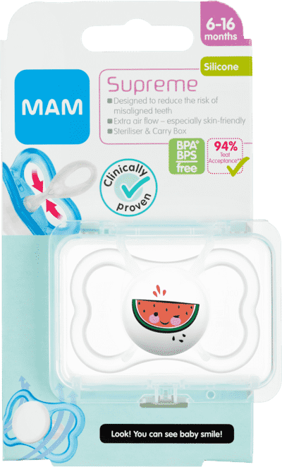 MAM Supreme 6-16m Silikon Vit (Vattenmelon)