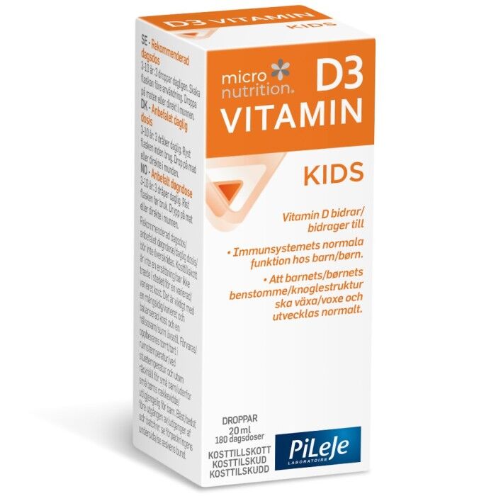 3-10 år: 3 droppar dagligen. Skaka flaskan före användning. Droppa på maten eller direkt i munnen. Flaskan innehåller 180 dagsdoser.
