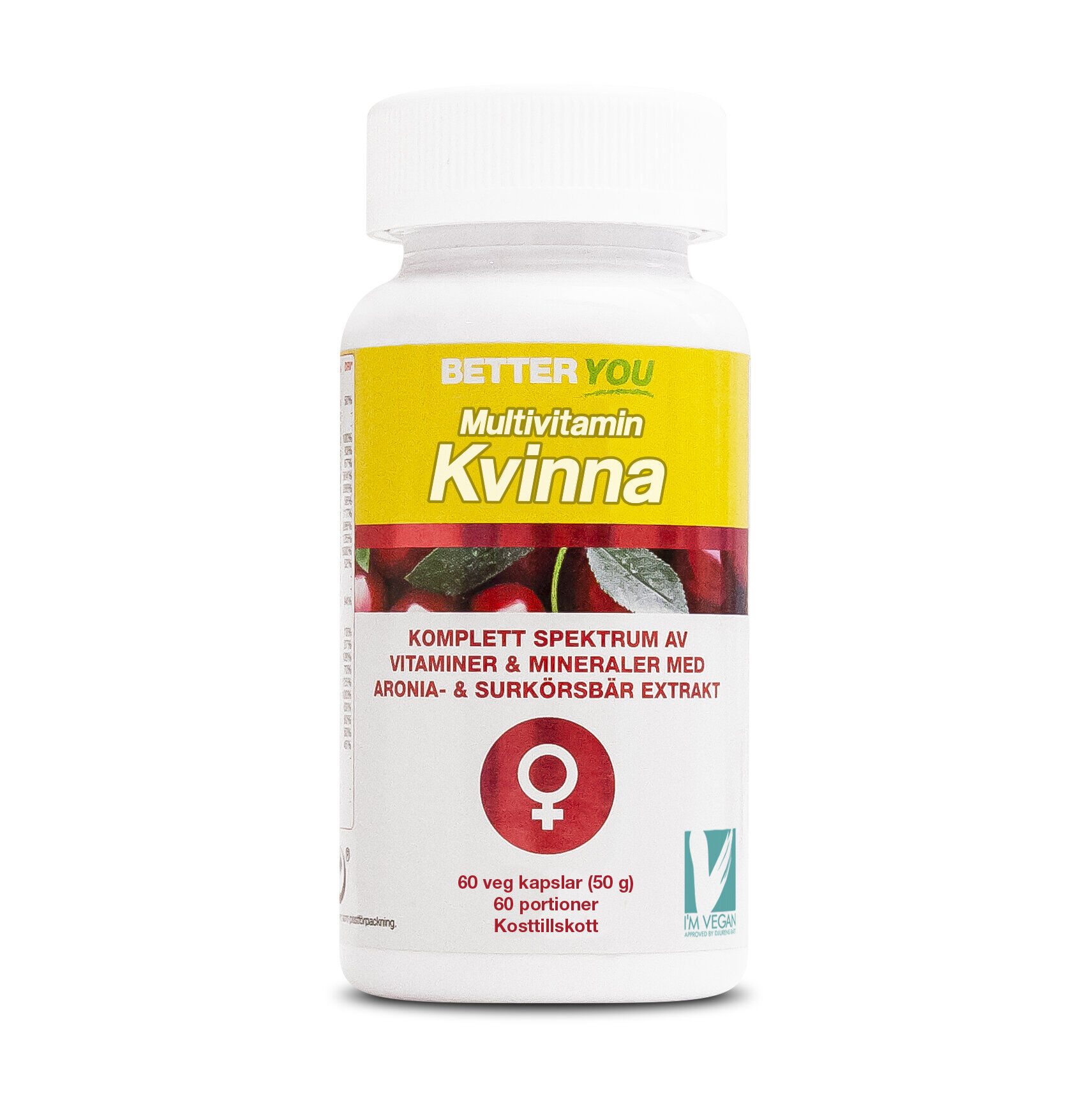 Multivitamin Kvinna från Better You innehåller ett brett spektrum av lättupptagliga vitaminer och mineraler speciellt sammansatta för kvinnors behov. Det är ett enkelt och bra komplement till den dagliga kosten för att säkerställa att man får i sig all den näringen man behöver för att fungera optimalt.