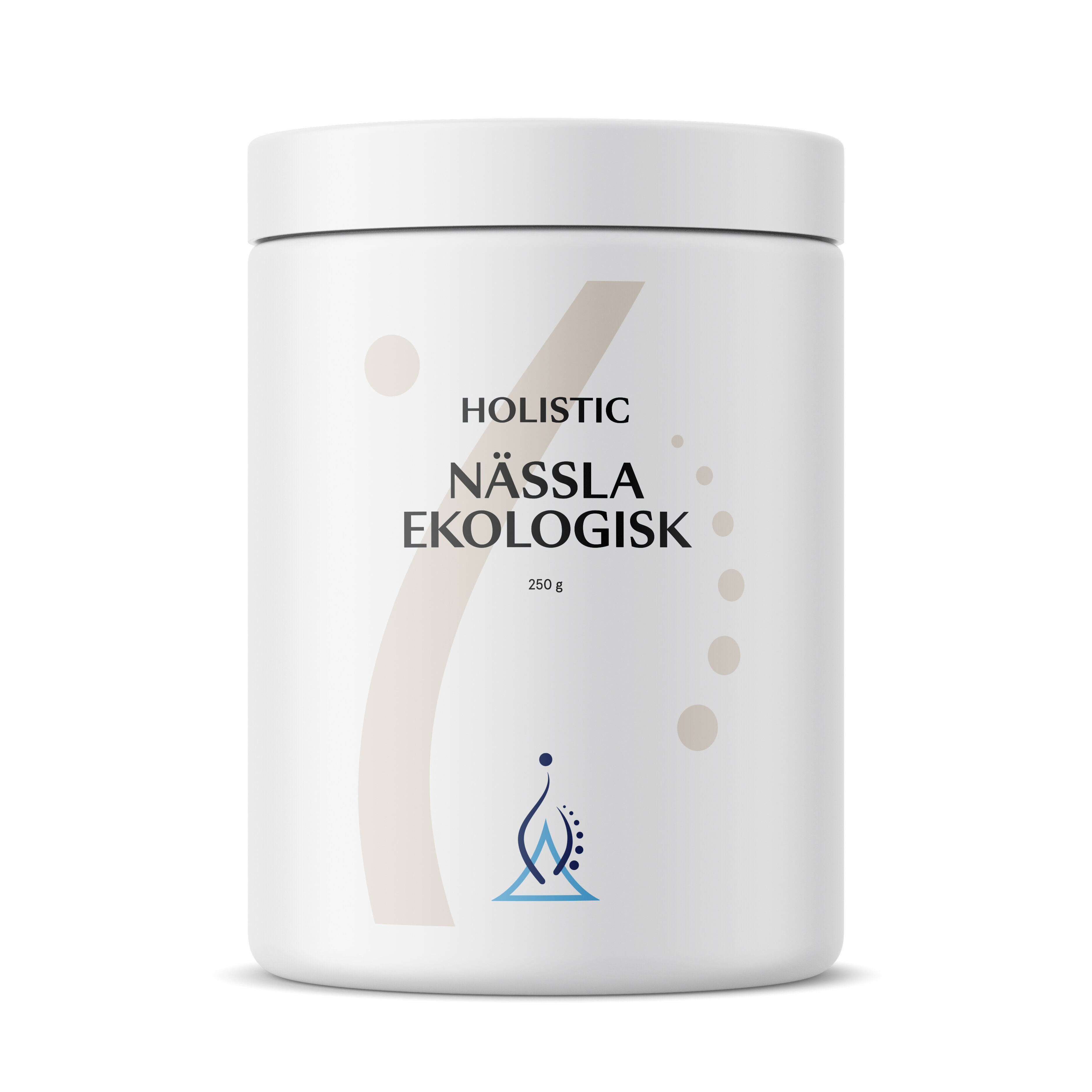 Holistic Nässla är ett ekologiskt pulver av torkad nässla - en av de mest näringrika växter som finns, rik på bland annat järn, magnesium och kalcium. Alla dessa tre bidrar till normal energiomsättning och både järn och magnesium bidrar dessutom till att minska trötthet och utmattning. Holistic nässelpulver är torkat vid max 40 grader för att bevara näringsämnena maximalt och ta bort den brännande egenskapen. Blanda 1-2 teskedar i vatten, gröt, soppor eller smoothies. Eller varför inte mixa med mjöl när du bakar bröd eller använda som nässelvatten till växtgödning? Om du kikar in på vår blogg hittar du flera spännande recept med just detta "ogräs", vad sägs till exempel om nässelpesto, nässelpaj eller nicecream med nässla?