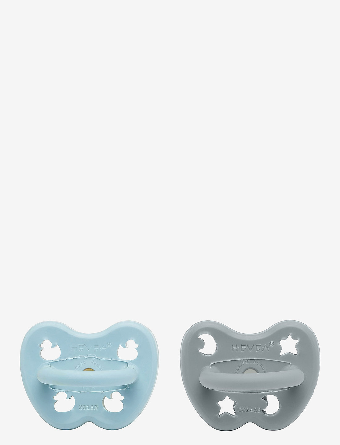 Den här nappen är ergonomiskt fjärilsformad, med utrymme för näsa och haka. Skölden är färgad med naturliga färgpigment och har fyra ventilationshål i form av ankor. Nappen finns med ortodontisk utformad sugdel.