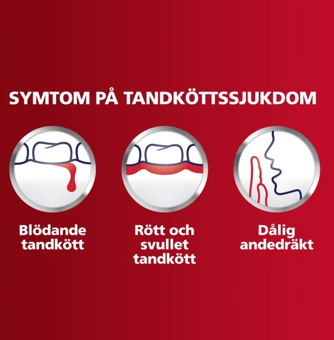 Medicinteknisk produkt mot blödande tandkött. Ska ej användas till barn under 12 år.