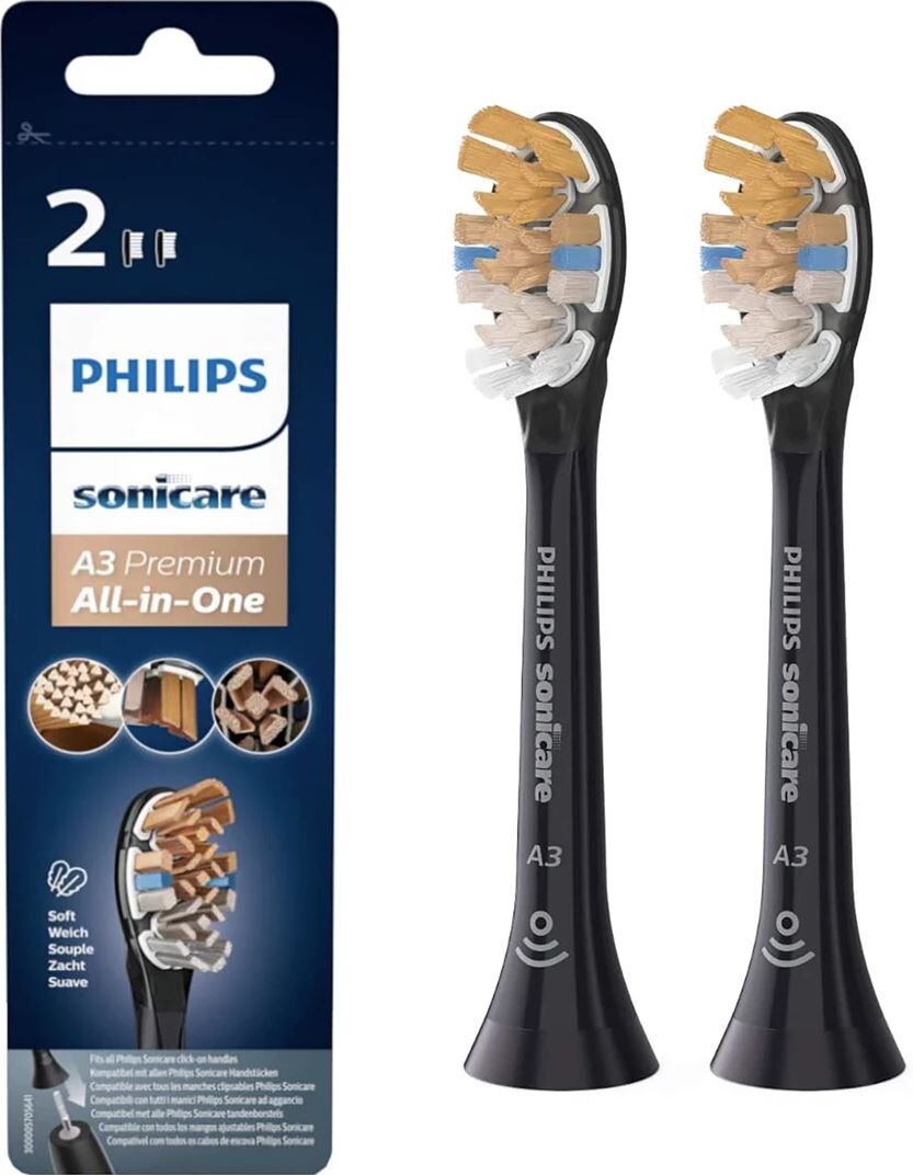 Allt-i-ett-borsthuvudet A3 Premium passar Philips Sonicare-handtaget med klickfäste perfekt (se listan nedan). Klicka bara på och av för enkelt byte och enkel rengöring.