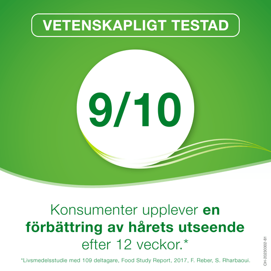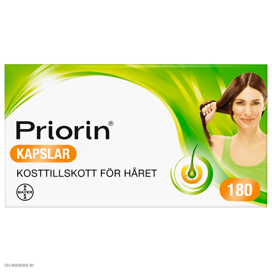 *Nr 1 mest sålda kosttillskott för hår: Nicholas Hall’s Europe CHC database, DB6 2021. Priorin® Kapslar är ett kosttillskott som är lämplig för vuxna och barn över 11 år. Kosttillskott bör inte användas som alternativ till en väl balanserad kost eller en hälsosam livsstil. **Livsmedelsstudie med 109 deltagare, Food Study Report, 2017, F. Reber/ S. Rharbaoui. "