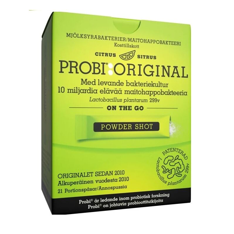 Probi Original Powder Shots innehåller minst 10 miljarder bakterier (cfu) per portionspåse.