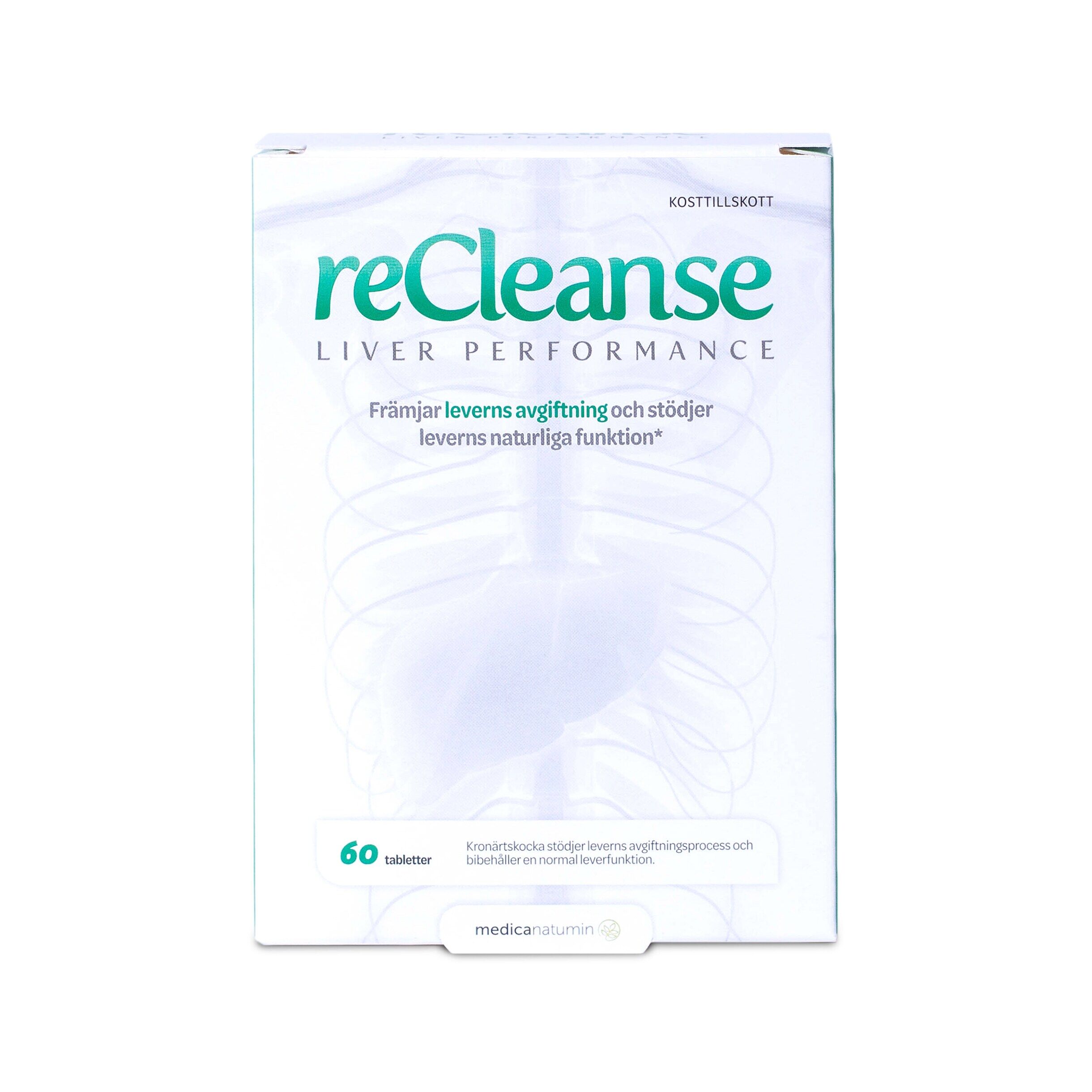 reCleanse är en kombinationsprodukt av aktiva ingredienser som stödjer avgiftning och en normal leverfunktion. Den innehåller örtextrakt och andra viktiga näringsämnen. Bland annat kronärtskocka, schisandra och gurkmeja.