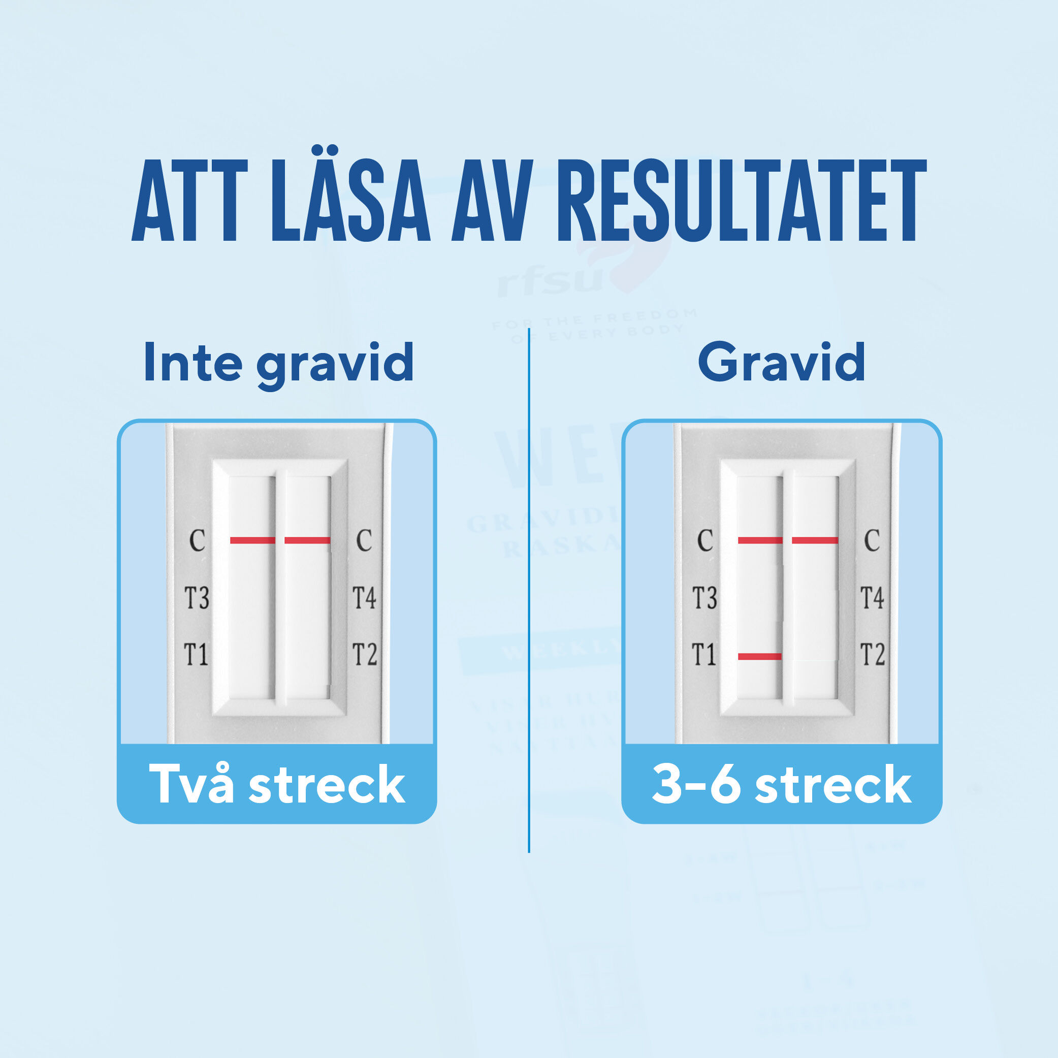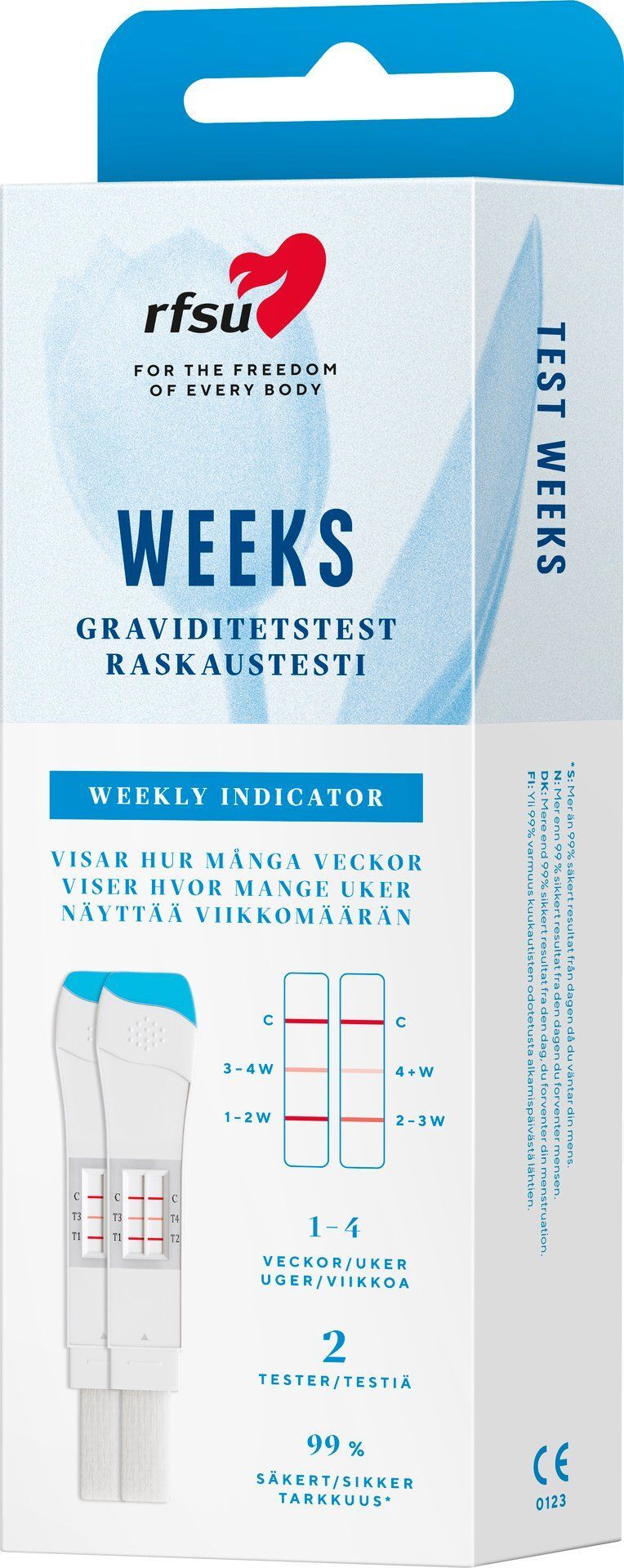 Med RFSU Graviditetstest Weeks kan du själv snabbt och enkelt ta reda på om du är gravid. Testet talar även om hur många veckor du har varit gravid med veckoindikator-funktionen. Du kan göra testet tidigt, redan 4 dagar innan väntad mens.