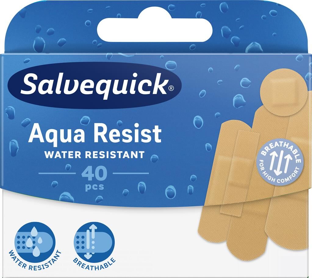 Salvequick Aqua Resist Mix innehåller 40 st plåster i olika storlekar - perfekt för hela familjen!
