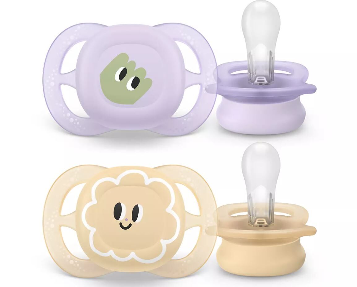 Vår nyfödda napp är designad för att passa munnen och ansiktena på väldigt små. Den är superliten och lätt, vilket gör den till sin idealiska första napp och uppfyller deras naturliga dibehov från dag ett.