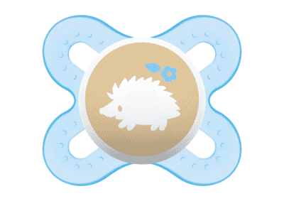 MAM Start 1-pack ligger i en praktisk förvaring- och steriliseringsbox som gör det enkelt att sterilisera sugnappen i mikron. Sugdelen har en anatomisk riktig form för gommens och tändernas utveckling och ligger alltid rätt i munnen. Knoppen gör sugnappen lätt att greppa för det lilla barnet.