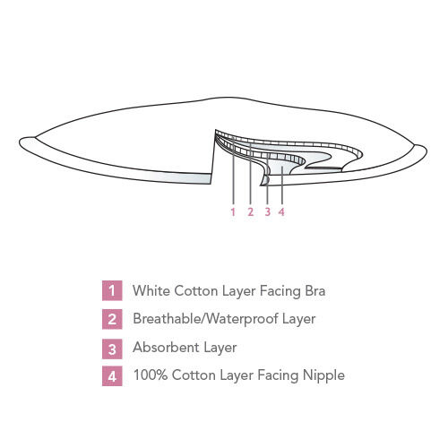 Mjuk bomullsflanell som absorberar bröstmjölk och håller brösten torra, vilket minskar risken för mjölkstockning och såriga bröstvårtor.