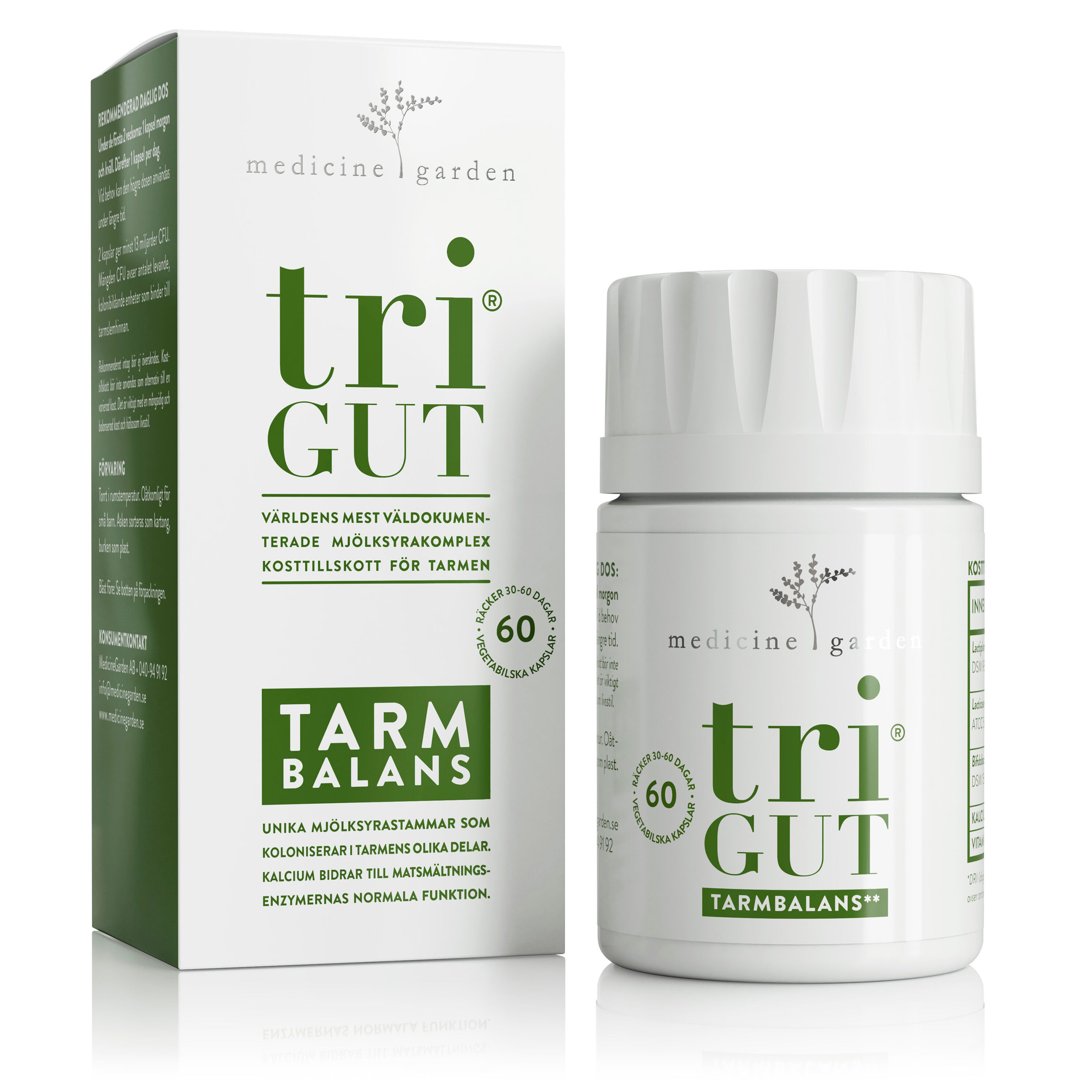 *Förutom de väldokumenterade mjölksyrabakterierna innehåller triGUT kalcium som stödjer matsmältningsenzymernas normala funktion.