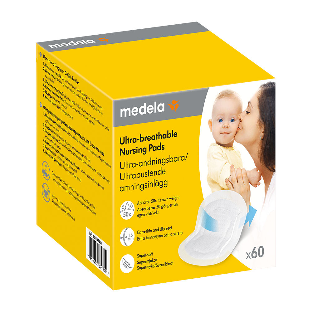 Medela Ultra-andningsbara amningsskydd är designade med mammor i åtanke. Kuddarna är bara 1,6 mm tunna och absorberar 50 gånger sin vikt, så att du kan vara torr, bekväm och trygg dygnet runt. De är 20 % mer andningsbara än de ledande konkurrenterna, supermjuka och har ett läckskydd för att förhindra sidoläckage.